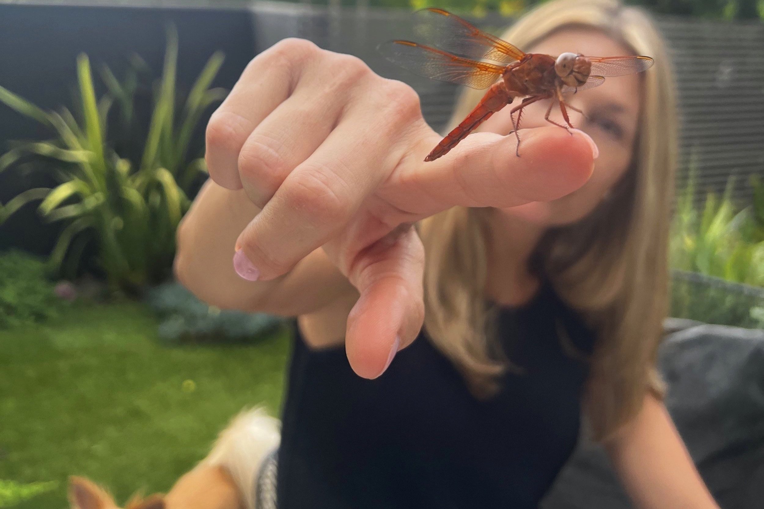 The flame orange-winged insect landed on my index finger, bringing joy, wellness, and creativity to anyone who witnesses its spectacular beauty. Perhaps I offered it a momentary respite from fluttering its intricately designed wings across Southern California. Considering that dragonflies have existed on Earth for over 300 million years, one might assume they have had ample time to determine their own purpose.